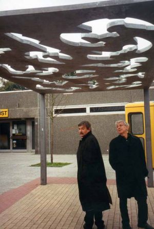 1998 stehen wir beide unter dem Wolkentisch in Bremerhaven und schauen nach oben. Die Tischplatte gibt mit ihren Durchbrüchen wolkenförmige Lichtfelder frei. Das stehengebliebene Eisen der Tischplatte bildet die Schatten, bildet die Löcher im Licht. Wie ich höre, steht der Wolkentisch nun im Schatten,