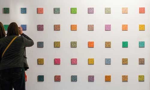Peyskens reiht diese Miniaturen eine an die andere, reagiert spontan und kreativ auf die Gegebenheiten der jeweiligen Ausstellungs-Architektur. Die Kombinationen, die Peyskens wählt, sind manchmal rein ästhetisch, allein durch ihre Form, Farbe oder Grafik definiert. Manchmal ist es aber auch der Inhalt, der sie prägt. Es werden sowohl politische Themen berührt als auch mit Elementen der Pop-Kultur gespielt, die allgegenwärtige Werbung aufs Korn genommen oder ihre ursprüngliche Bedeutung ins Gegenteil umgekehrt.